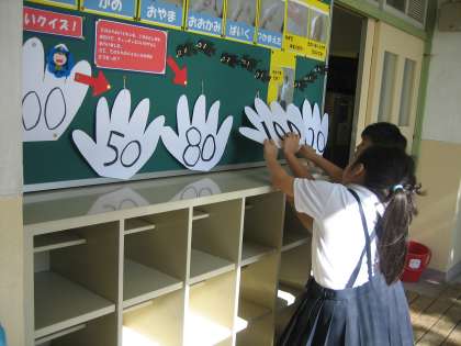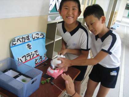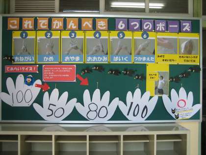 ヒントは、保健室前の掲示や、手洗い場の掲示です。