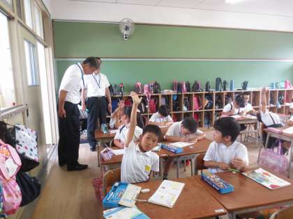 学校全体や各学級の子どもたちの様子を見に、大阪市教育委員会より2名の先生が訪問されました。子どもたちは少し緊張していましたが・・・いつも通りしっかりと学習をしていました。