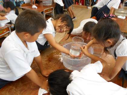 水をさわり気持ち良さそうに学習をしていました。