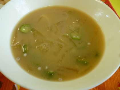 夏野菜のとうがん(冬瓜)、オクラをみそ汁に入れています。