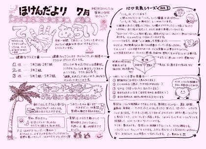 健康チェック(ハンカチ・ティッシュ)の結果や夏休みの過ごし方、そして、心の元気シリーズを載せています。ご覧ください。