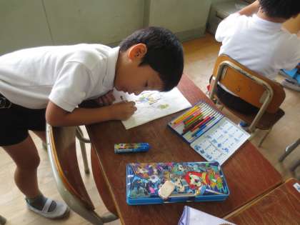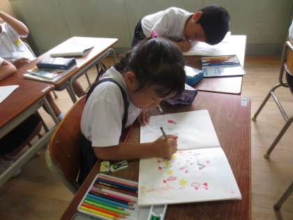 自主学習をしていました。本読み、漢字練習、絵も描いていました。