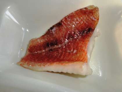 赤魚を塩焼きし、甘辛いたれをかけています。
