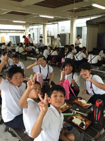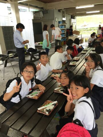 ハチ高原では、昼食に弁当を食べました。みんな元気です。
