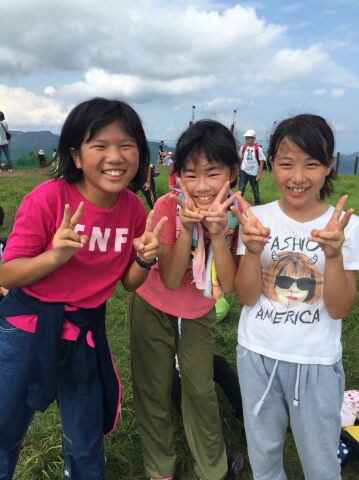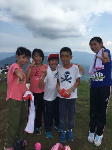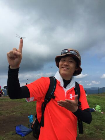 山頂についてから少し時間が経ち、みんなに笑顔が出てきました。新田先生がトンボを見つけました。指先に止まっています。「びっくり!」