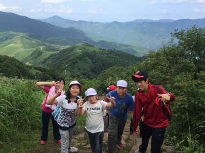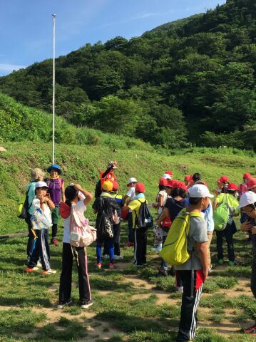 2日目の大きな行事の1つ「鉢伏山登山」です。活動班で登りました。お互いに励まし合いながら、途中で休憩や水分補給を取りながら、一人一人頑張りました。