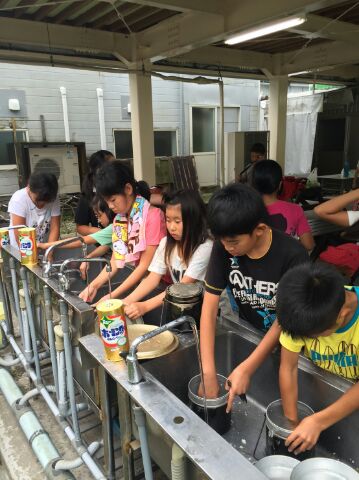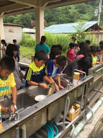 カレーライスはおいしかった、満足! 家庭や学校と違って、食べたものや使ったものをもとのように綺麗にしなければなりません。しかし、みんなは協力して、てきぱきと片付けることができました。