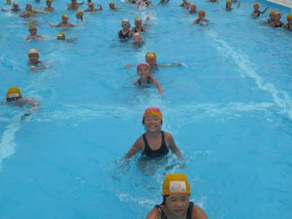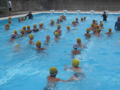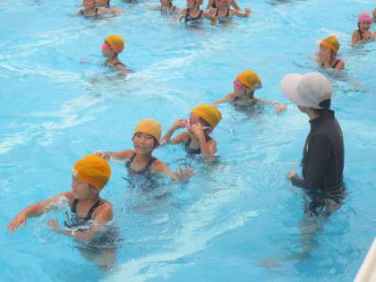 水慣れの練習をみんなで楽しくしています。8/2(火)