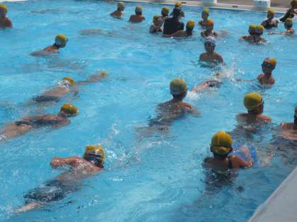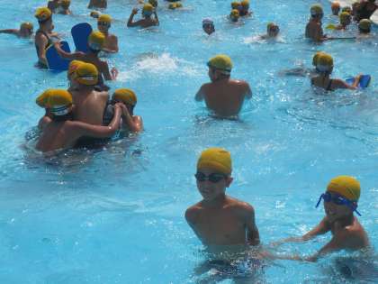 夏休み最後のプール開放も25mを繰り返し泳ぎ、泳力と泳法を身につける練習をしました。練習後のリラックスタイム(水遊び)の様子1です。