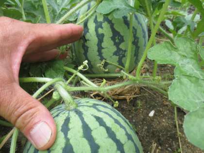 雌花が次々に咲き、実になっていっています。あまり多くの実をつけると一つ一つが大きくなりませんが・・・摘み取るのが可哀そうで・・・
