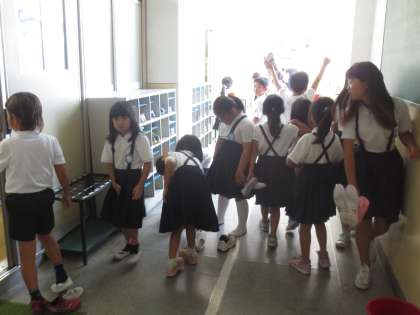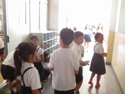 地区児童会を終えて教室にもどっています。地区児童会では、集団登校について話し合いました。2学期が始まったばかりで生活のリズムが不安定になりがちです。朝の登校が安全にできるように、しっかりとみんなで話し合いました。