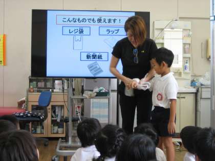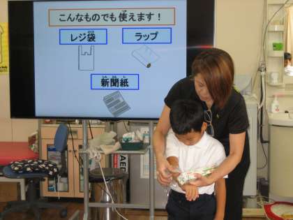 けがの手当に、スーパーの袋や、ラップ、新聞紙でも役立