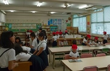 今週から図書館開放が始まりました。運動会の練習の準備をして、図書室に来ていました。今日は、雨が降って運動場が使えないので、だんだん人数も増えてきました。
