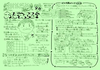 9月の保健だよりを配付しました。地震のときの行動や避難について、夏休み歯みがきカレンダー〜おうちの人の感想、スマホ アンケートの結果について等を載せています。ご覧ください。