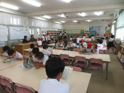 9/23(金)も図書館ボランティアの方々に、図書館を開放していただきました。たくさんの子どもたちが本を読みに図書館に集まっています。