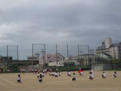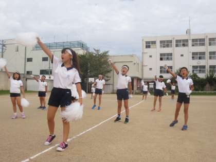 赤組・白組どちらの応援団も、運動場に響き渡る声で応援練習をしていました。