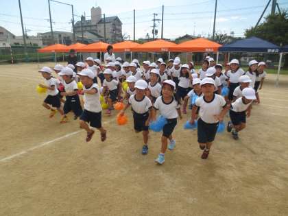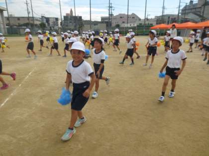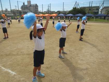 9/27(火)団体演技「ちきゅうじん☆」の練習をしています。とても可愛くリズムにのっておどっていました。
