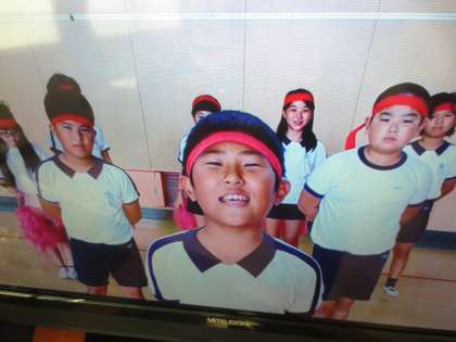 給食の時間、応援団より元気の出るメッセージ映像が、全学級に届けられました。
