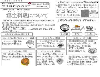10月の給食献立表・はぐくみ通信10月号を配付しました。ホームページの右記の配布文書にも載せています。ご覧下さい。