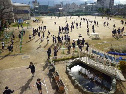 「やったー!あそべる!」とたくさんの児童が運動場へ出ていきました。
