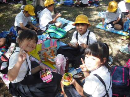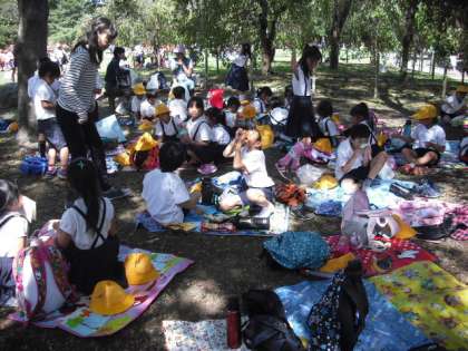 博物館を見た後は、お楽しみのお弁当タイムです。友だちと楽しく食べました。