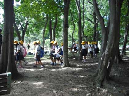 食べた後、ドングリや松ぼっくり拾いをして帰りました。とても暑くて疲れましたが、「楽しかった〜。」そうです。