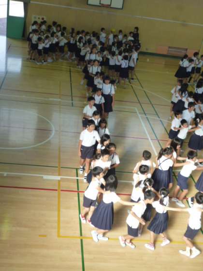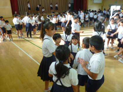 次々にジャンケンをしていくと、とても長い列ができてきました。最後に一番長い列ができたグループが、みんなから拍手をもらっていました。