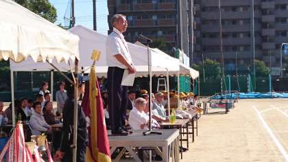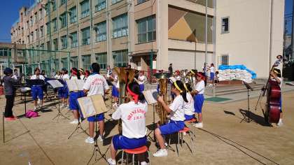 入場行進では、吹奏楽クラブの生徒たちが演奏をしていす。校長先生、PTA会長さんの話を整然と並びどの生徒もしっかりときいていました。