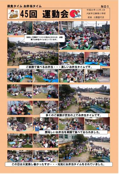 運動会10/2(日)の様子を少しずつ「学校長だより」に載せていきます。今日はお弁当タイムの様子です。