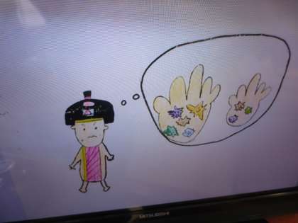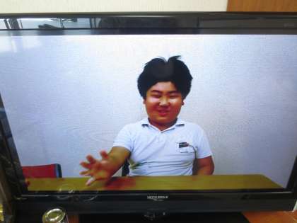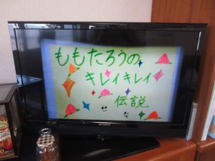 給食の時間、保健委員会から手洗いのメッセージをテレビ放映で全校に伝えました。