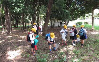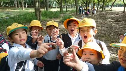 ドングリをたくさん見つけて、とることができました。大きさの違うものや形や種類の違うものがありました。袋の中は、ドングリでいっぱいになりました。
