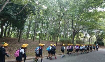 寒くなるのが心配でしたが、みんな元気で、体力を使い切るぐらい思いをっきり楽しむことができました。広い緑地をいっぱい歩きました。大きな木々の中を歩くのは気持ちがよかったです。