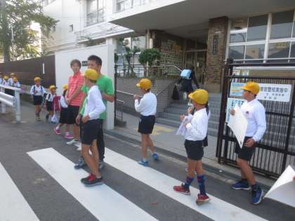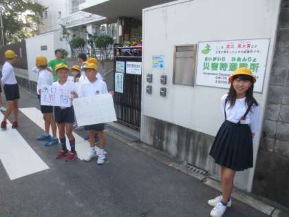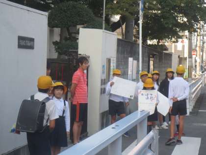 児童会代表委員の児童が「あいさつ週間」を前に、全校朝会で「朝のあいさつ」を呼びかけていました。【あいさつ週間10/18〜10/21】