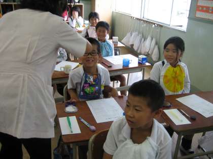 歯科衛生士の方に、歯みがき指導をしていただきました。