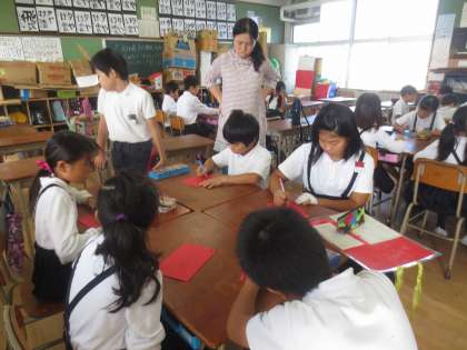 【子どもフェスティバル縦割り班の準備 6年2組】
