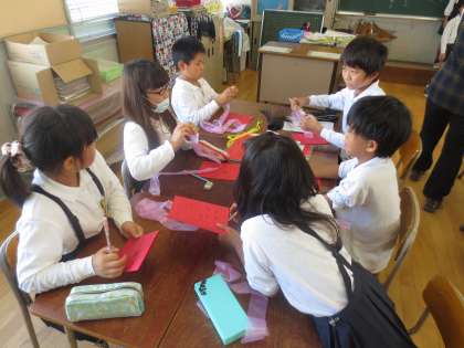 【子どもフェスティバル縦割り班の準備 3階学習室】