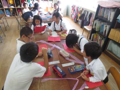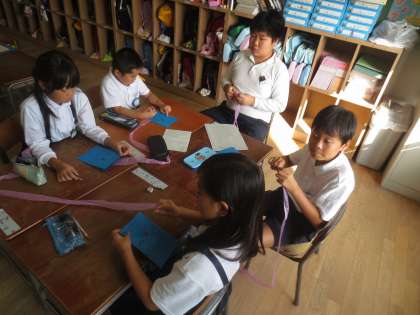 【子どもフェスティバル縦割り班の準備 1年2組】