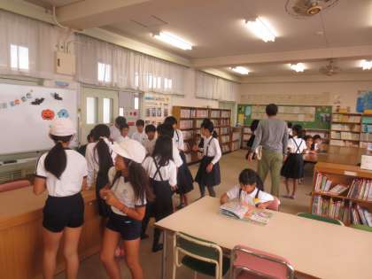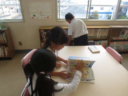 運動場で遊ぶ子どもは多いですが、本好きの子はいつも図書館に来てくれています。
