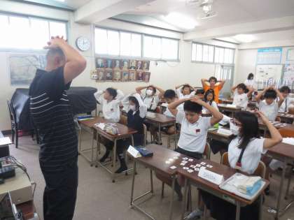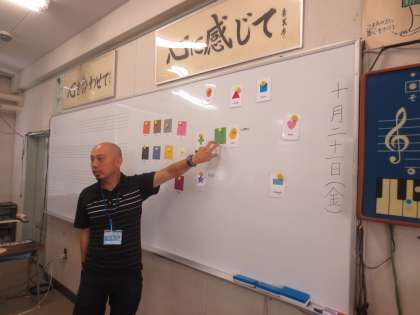 10/21(金)の英語の学習です。カードを使いゲームをしています。全て英語でゲームをしますが、子どもたちは理解しています。