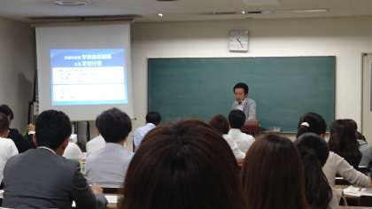 この研修会の講師として、学校行事の分野で巽南小学校の高本先生が発表しました。若手を対象にした研修会で、わかりやすく具体的に発表されていました。