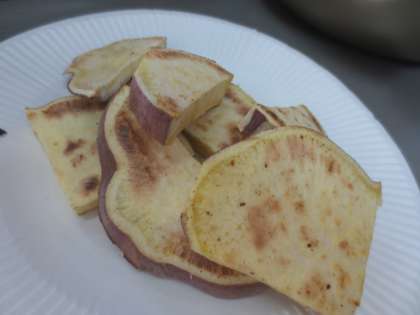 10/12(水)においも掘りをして、今日はおいもの収穫祭です。次の種となる大切なおいもの養分をいただくのです。「いのち」をいただくことを理解し、みんなで感謝し美味しくいただいていました。今日は1組の様子です。2組は明日のHPに載せます。
