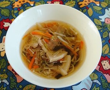 豚ばら肉が入った汁ものです。沖縄の郷土料理です。