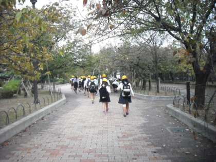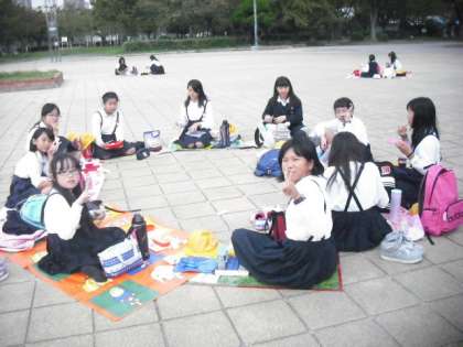 造幣博物館見学の後は、桜並木を抜けて、お楽しみのお弁当タイムの場所へ。