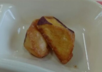 さつまいもを油で揚げて、甘辛いたれをからめています。子ども達に好評なメニューです。