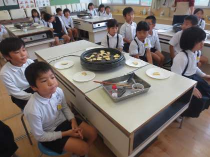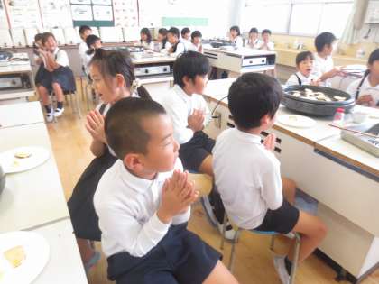 10/26(水) 2年2組のおいもの収穫祭です。次の種となる大切なおいもの養分をいただくのです。「いのち」をいただくことを理解し、みんなで感謝し美味しくいただいていました。