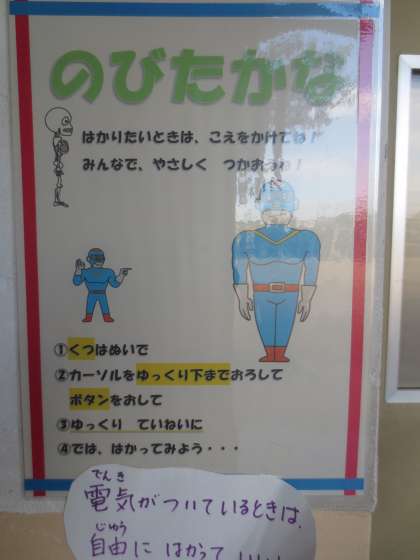 全校朝会で桂先生から、保健室の前に置いてある身長計についてお話がありました。成長している自分を確かめに来て下さい。デジタル式で簡単に身長が測れます。一週間、一月でも身長は伸びています。さあっ自分の成長を知りましょう。電源が入っていないときは保健室に声をかけて下さいね。