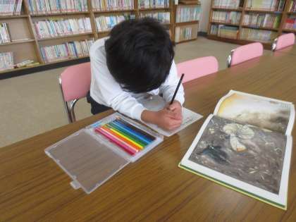 「この本をすいせんします」の用紙に、自分が紹介したい本を絵と文で伝えます。
