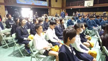 新巽中学校の文化発表会に巽南小学校の6年生が、小中連携の取り組みとして、発表の一部を見学させていただきました。6年生は元小学生の先輩がたくさんいるので、とても楽しみにしていました。