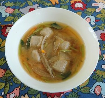 いわしだんごが入ったみそ汁です。寒いときに温まるメニューです。