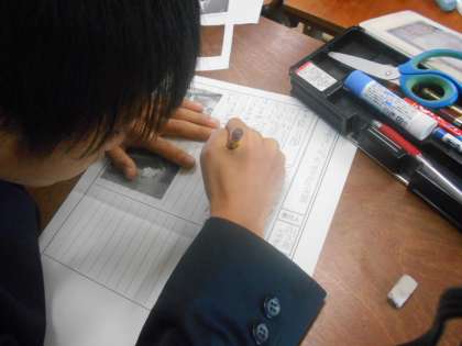 奈良公園の遠足でタブレットに記録した写真をプリントアウトしました。今日はこの写真を使って新聞づくりをしています。
